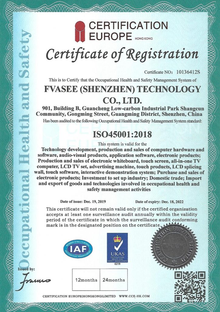 Business Scope: This system is valid for the Technology development,production and sales of computer hardware and software,audio-visual products, application software,electronic products;Production and sales of electronic whiteboard,touch screen,all-in-one TV computer,LCD TV set,advertising machine,touch products,LCD splicing wall,touch software,interactive demonstration system;Purchase and sales of electronic products;Investment to set up industry;Domestic trade;Import and export of goods and technologies involved in occupational health and safety management activities.