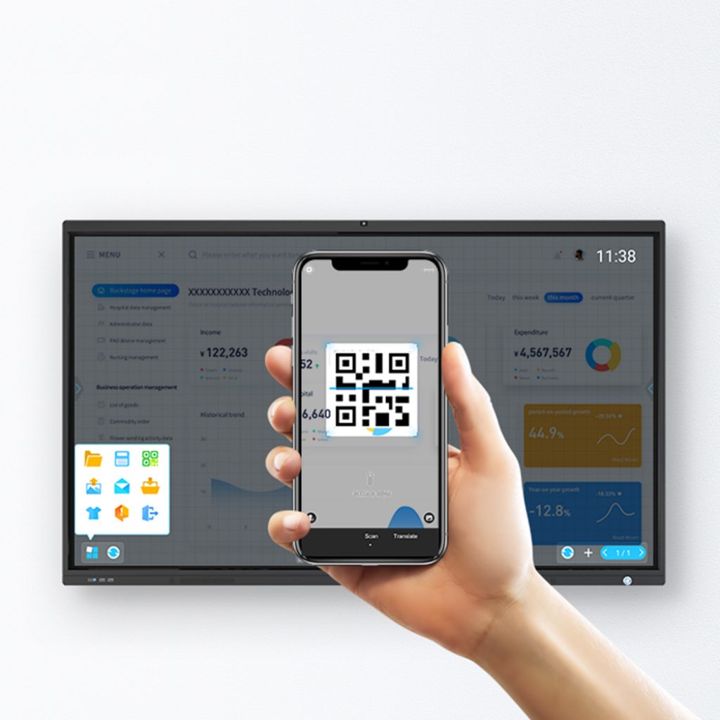 - Android 8.0 system with built in applications for leading meetings interactively with the audience.