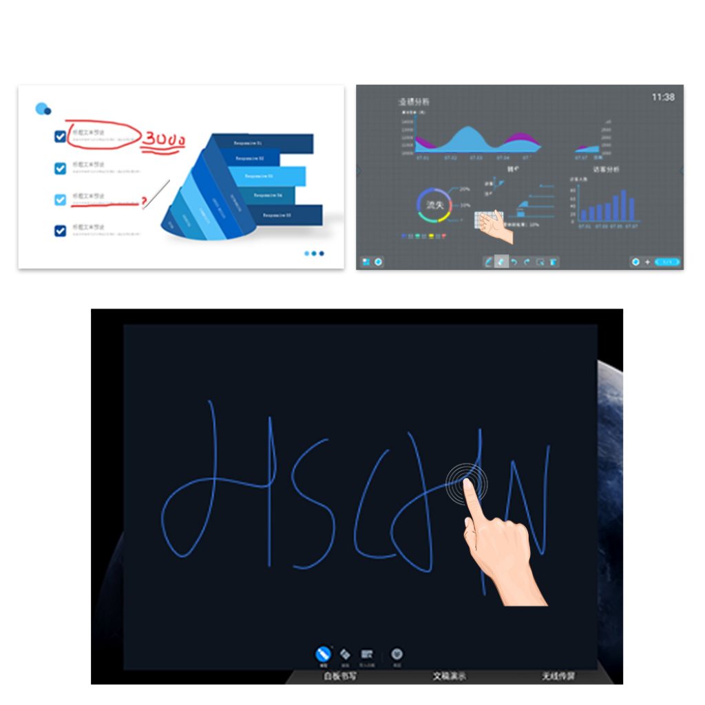 2)10 fingers can write simultaneously on our IR touch screen display, built-in OPS PC, and free whiteboard software,