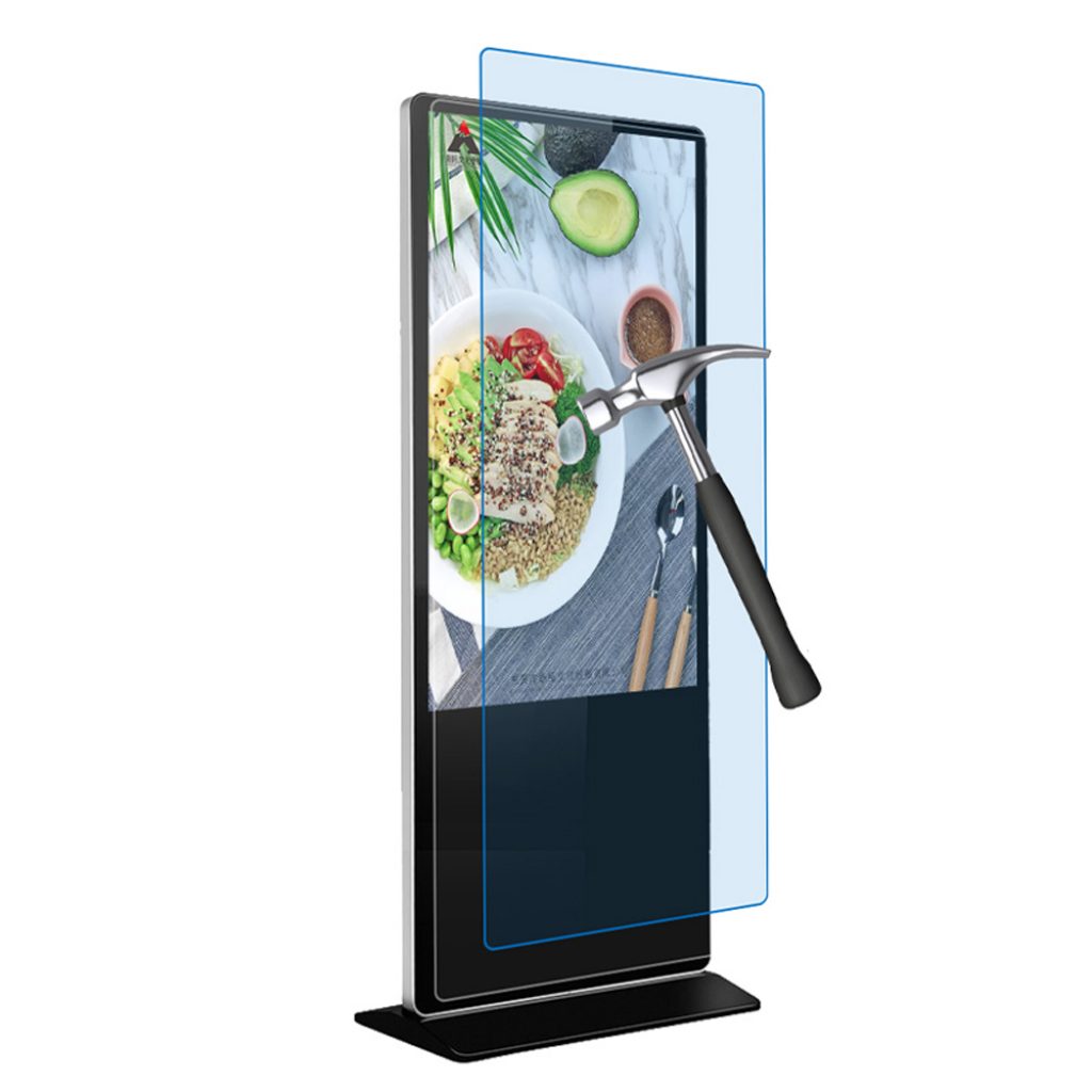 Our floor standing digital signage adopts tempered explosion-proof glass, which is hard, impact-resistant, scratch-resistant, with good light transmittance, heat-resistant and cold-resistant.