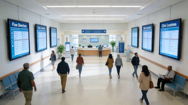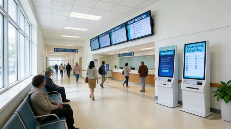 Many outpatient facilities are introducing interactive displays to streamline check-in and service processes. Touch-enabled screens can guide patients through basic steps or provide directional information.