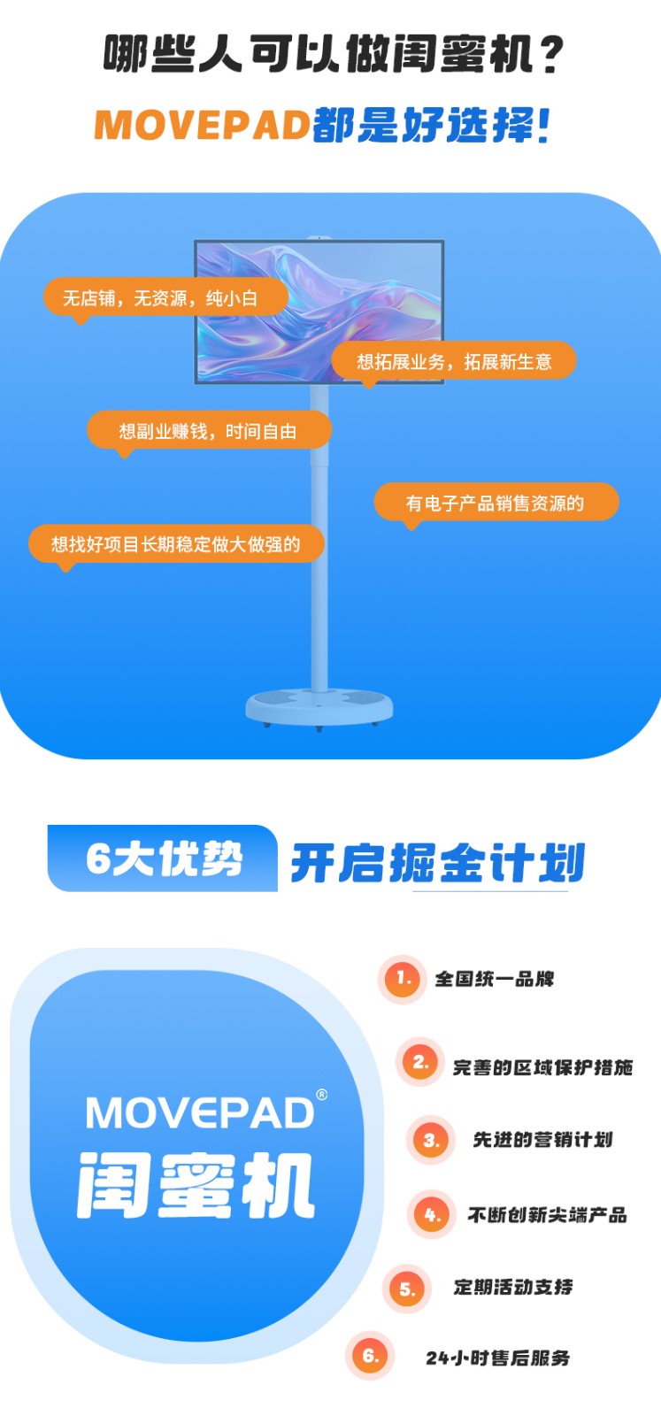 华视闺蜜机城市合伙人,全国火热甄选中! 1. 华视闺蜜机加盟完善的品质保证,客户回头率极高; 2.全国统一品牌,统一零售价; 3.在约定的条件下,为您提供较优质的售后服务.保证在代理区域内品牌独家经营权; 4.完善的区域保护措施、拒绝串货流通; 5.先进的营销策划,印刷宣传品,现场助销POP、品牌形象附料等及时配送; 6.不断创新的尖端产品,源源不断; 7.定期活动支持,根据季节及人文体系每月制定不同的促销方案;不同的优惠政策。